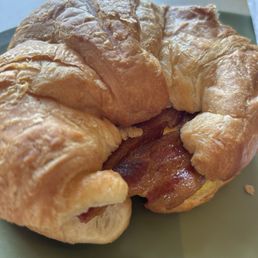 I ordered the build your own breakfast sandwich and I chose a croissant with eggs and bacon and a strawberry twist smoothie. The croissant was fresh and soft. The eggs like they were scrambled then fried using a mold on the grill. The bacon was snappy versus crispy. The strawberry twist smoothie tasted great and it was filling. This is a cute and clean little cafe.